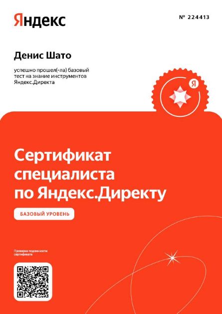 Денис Шато является сертифицированным специалистом Яндекса и постоянно совершенствует свои навыки, чтобы быть в тренде всех нововведений IT маркетинг индустрии